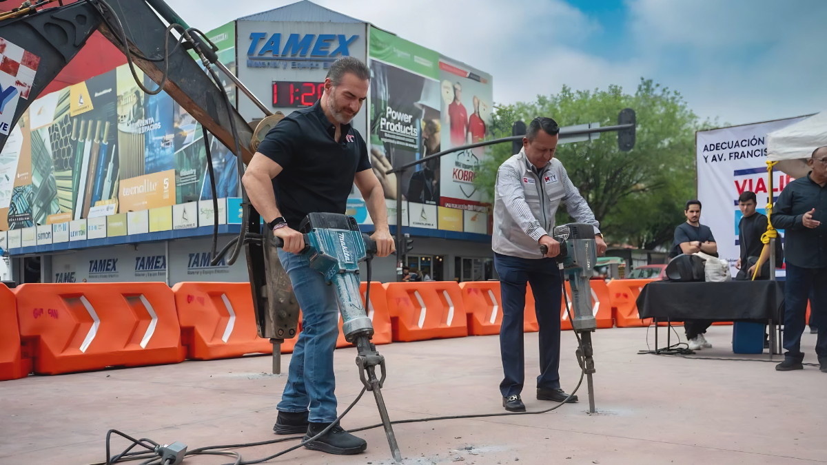 El municipio de Monterrey avanza con las obras viales en el centro. Los trabajadores recuperan actualmente seis carriles de tránsito continuo. Esta acción estratégica busca solucionar el grave embotellamiento matutino.